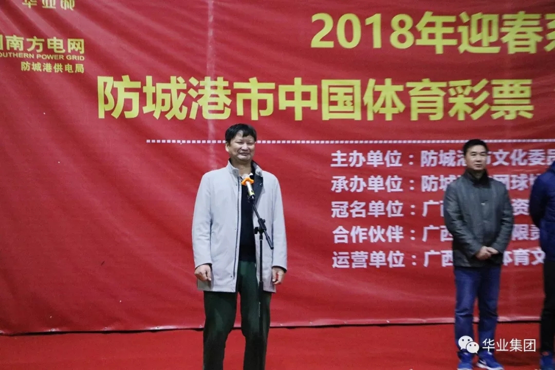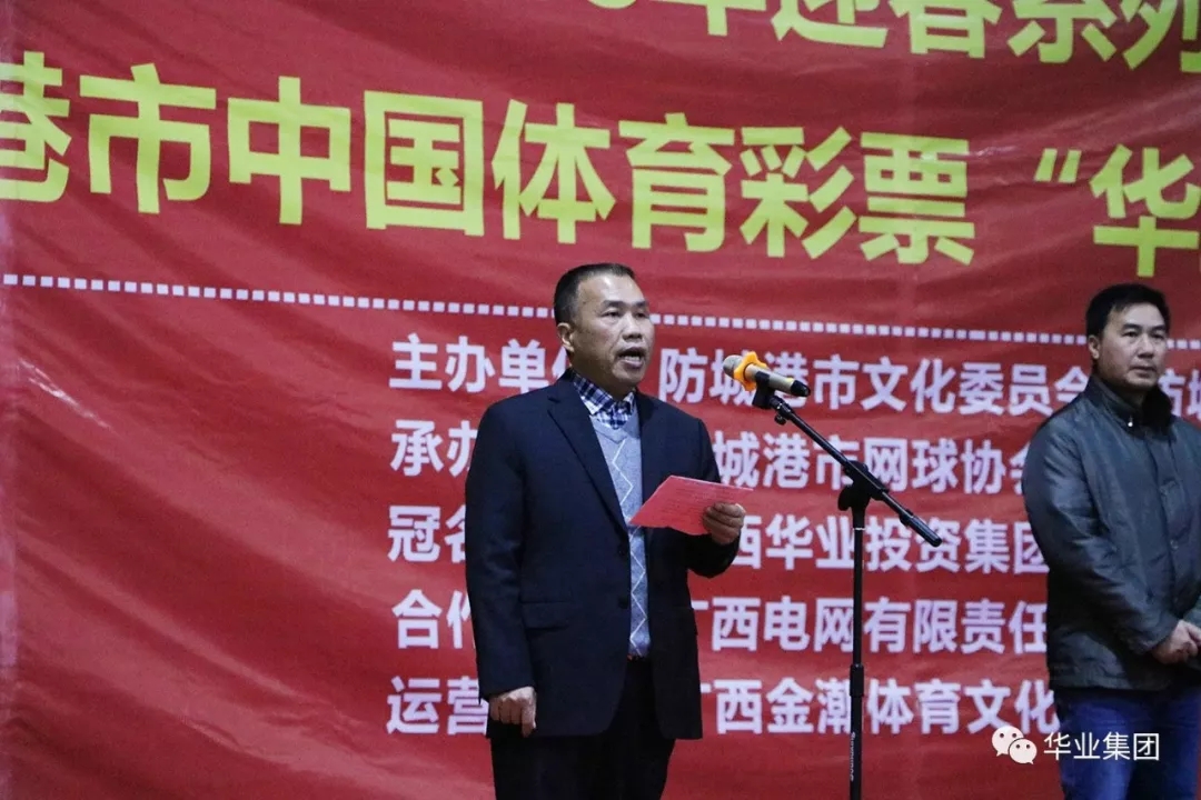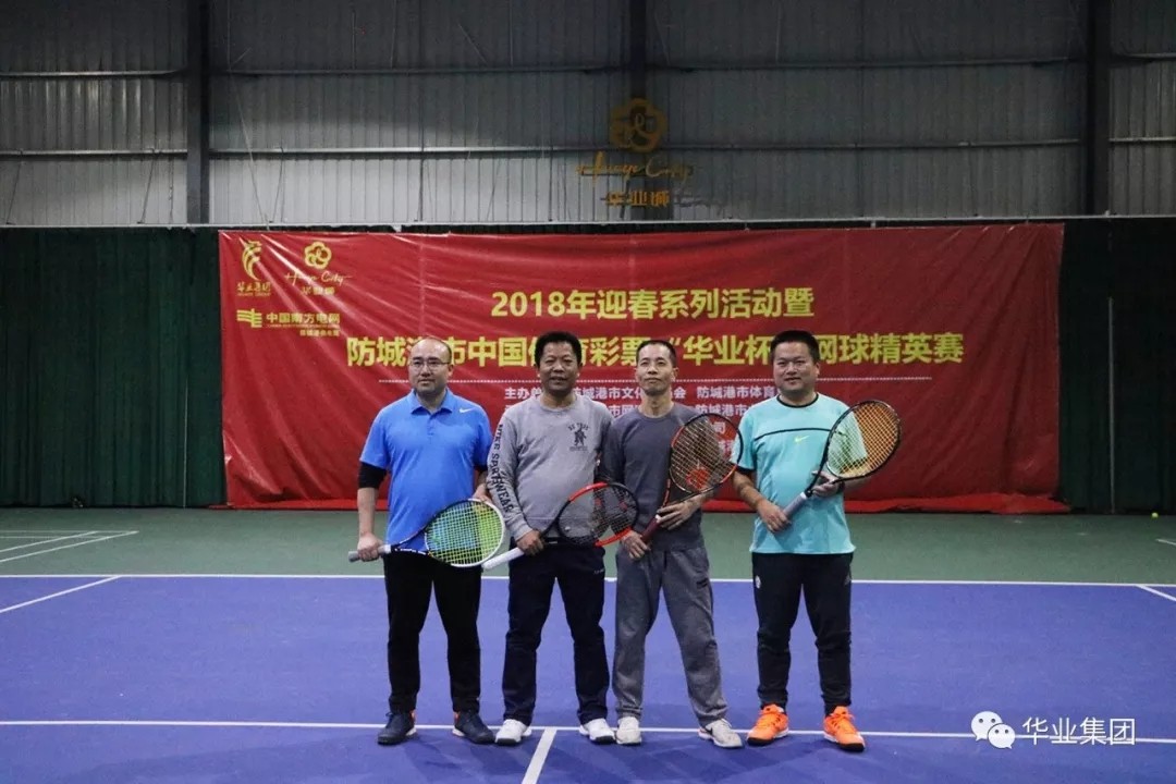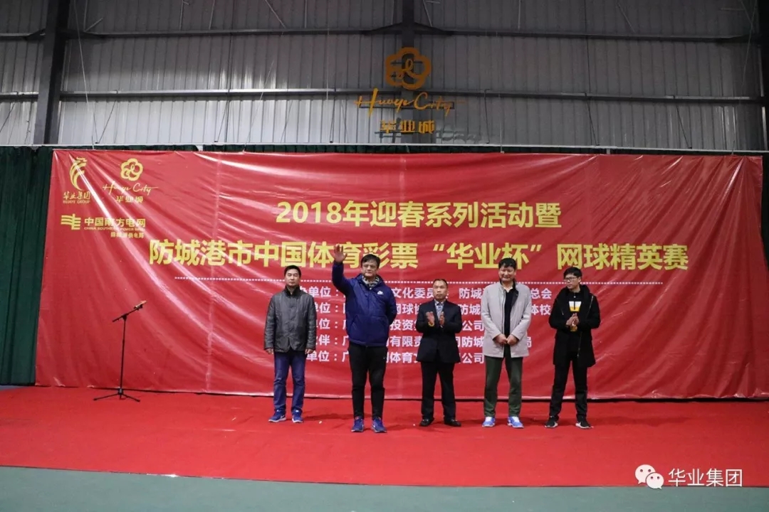 2018年2月2日,由華業(yè)集團(tuán)冠名的“防城港市中國體育彩票華業(yè)杯網(wǎng)球精英賽”在華業(yè)城全民健身活動中心拉開序幕,防城港市市委常委、常務(wù)副市長唐軼昂,副市長、公安局局長王琛,市住建委主任張常路,市文化委員會副主任陳文智,廣西華業(yè)投資集團(tuán)總裁龍其偉,市網(wǎng)球協(xié)會會長莫自鋒出席開幕式。