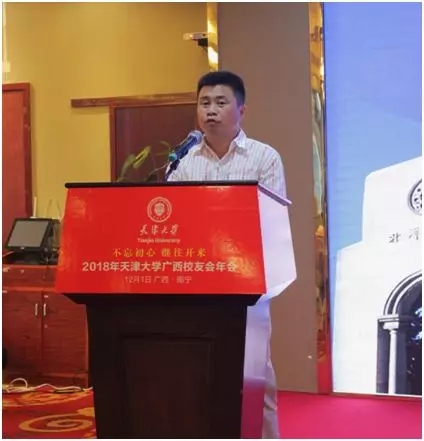 當(dāng)天,龍其生董事長出席了大會并致辭,天津大學(xué)校友總會副會長、天津大學(xué)原黨委副書記、紀(jì)委書記汪曣,國際教育學(xué)院院長陳志華、遠(yuǎn)程與繼續(xù)教育學(xué)院院長殷紅春等母校領(lǐng)導(dǎo)出席了大會并發(fā)言,出席大會的嘉賓還有天大研究生院綜合管理辦公室主任盧錚松、校友與基金事務(wù)處副處長谷鈺、自動化學(xué)院副教授蘇毅珊以及來自兄弟高校廣西校友會的代表。