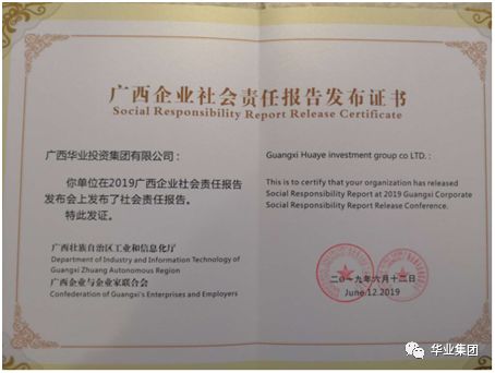 本次發(fā)布會以“履行社會責任、建設壯美廣西”為主題,以展示交流為核心,以典型發(fā)布與書面發(fā)布相結合,我區(qū)66家企業(yè)面向社會公開發(fā)布2018年度社會責任報告。華業(yè)集團憑借2018年的優(yōu)秀業(yè)績及高度的社會責任感,成功入選發(fā)布行列。