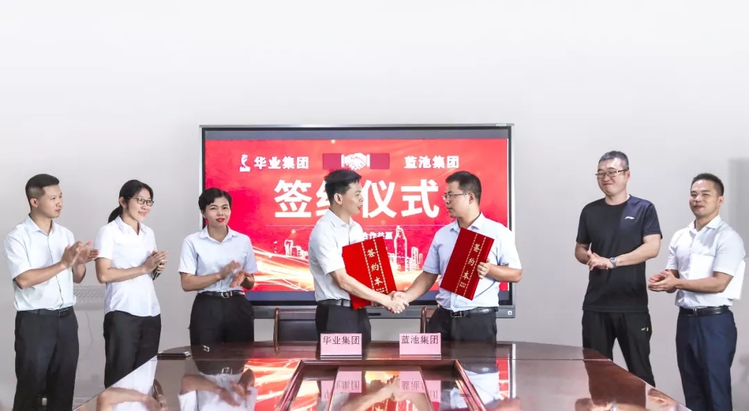 華業(yè)集團(tuán)副總裁熊昭斐,藍(lán)池集團(tuán)董事長助理王艷剛分別代表雙方簽署了合作協(xié)議,華業(yè)集團(tuán)財(cái)務(wù)總監(jiān)李情、工會主席鐘麗霞、藍(lán)池集團(tuán)項(xiàng)目部總監(jiān)左江濤等領(lǐng)導(dǎo)出席見證了簽約儀式。