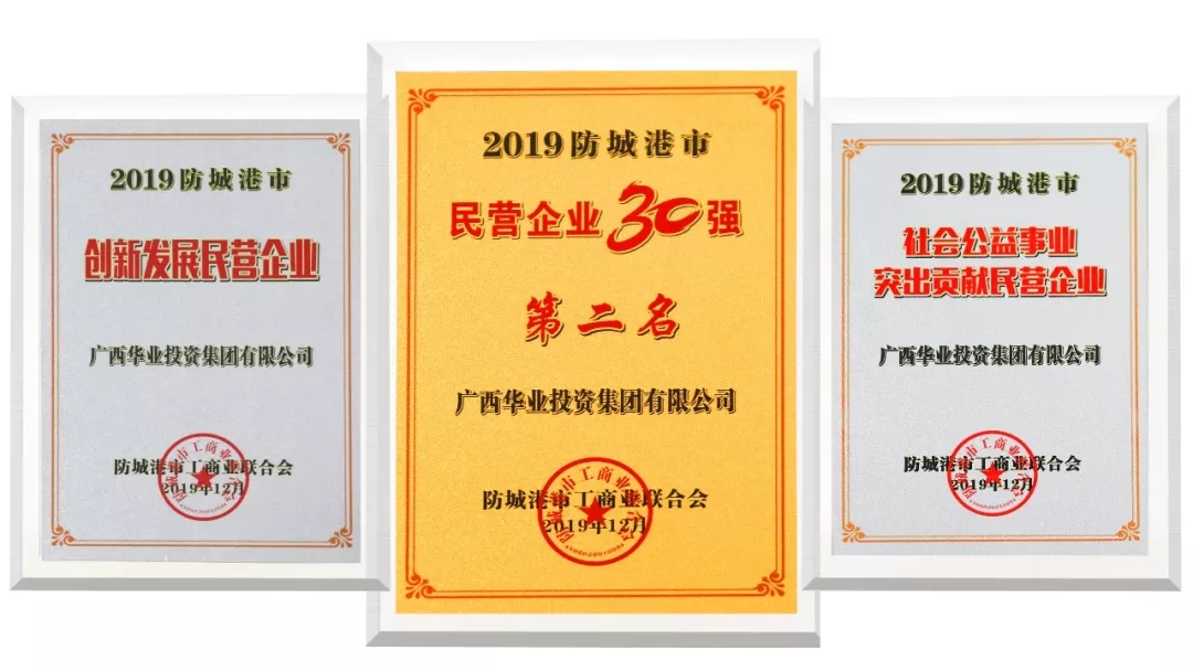 會上還同時發(fā)布了“2019防城港市創(chuàng)新發(fā)展民營企業(yè)”和“2019防城港市社會公益事業(yè)突出貢獻民營企業(yè)”等獲獎名單,廣西華業(yè)投資集團以優(yōu)異的表現(xiàn)、突出的貢獻同時獲得了這兩項殊榮。