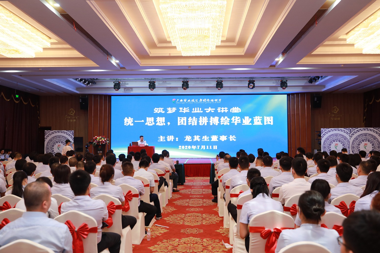 2020年7月11日,華業(yè)集團(tuán)“筑夢(mèng)華業(yè)大講堂”首期講堂拉開(kāi)序幕,集團(tuán)龍其生董事長(zhǎng)為集團(tuán)全體中高層領(lǐng)導(dǎo)講授了主題為“統(tǒng)一思想,團(tuán)結(jié)拼搏繪華業(yè)藍(lán)圖”生動(dòng)而精彩的一課。“筑夢(mèng)華業(yè)大講堂”將打造為集團(tuán)今后常態(tài)化開(kāi)展的學(xué)習(xí)交流平臺(tái)。