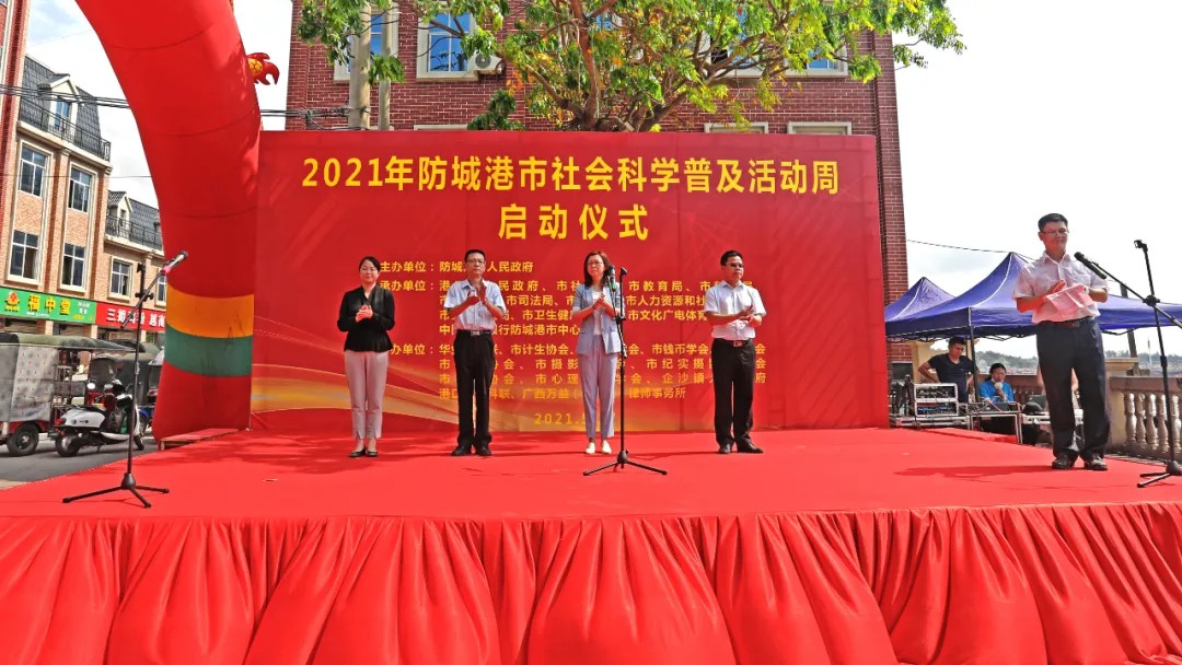 2021年5月17日,防城港市2021年社會(huì)科學(xué)普及周活動(dòng)啟動(dòng)儀式在港口區(qū)企沙鎮(zhèn)朝陽路三角塘廣場順利開幕!防城港市人民政府副市長于華等領(lǐng)導(dǎo)出席了啟動(dòng)儀式,并向華僑學(xué)校等有關(guān)單位、學(xué)校、群眾代表贈(zèng)送科普書籍。廣西華業(yè)投資集團(tuán)有限公司社會(huì)科學(xué)界聯(lián)合會(huì)(簡稱“華業(yè)社科聯(lián)”)等近20家會(huì)員單位踴躍參加了啟動(dòng)儀式及普及周活動(dòng)。