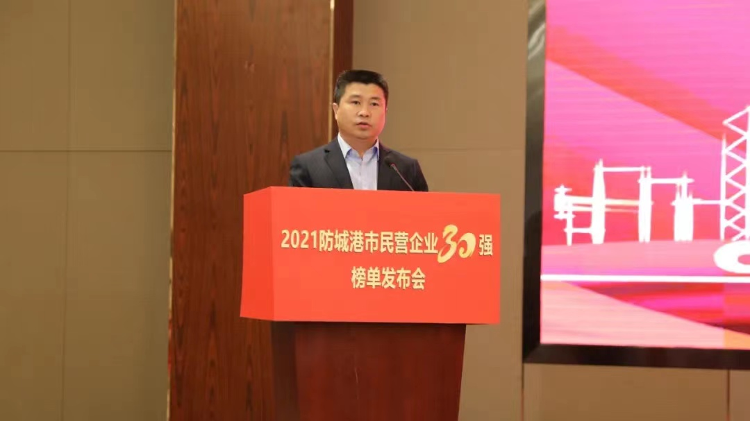 2021年10月22日上午,防城港市2021民營企業(yè)30強發(fā)布會在港口區(qū)隆重舉行。華業(yè)集團榮列榜單第2名,并榮獲2021年“民營企業(yè)助力脫貧攻堅先進單位”、“民營企業(yè)抗擊新冠肺炎疫情先進單位”榮譽稱號,龍其生董事長上臺領獎并作典型發(fā)言。