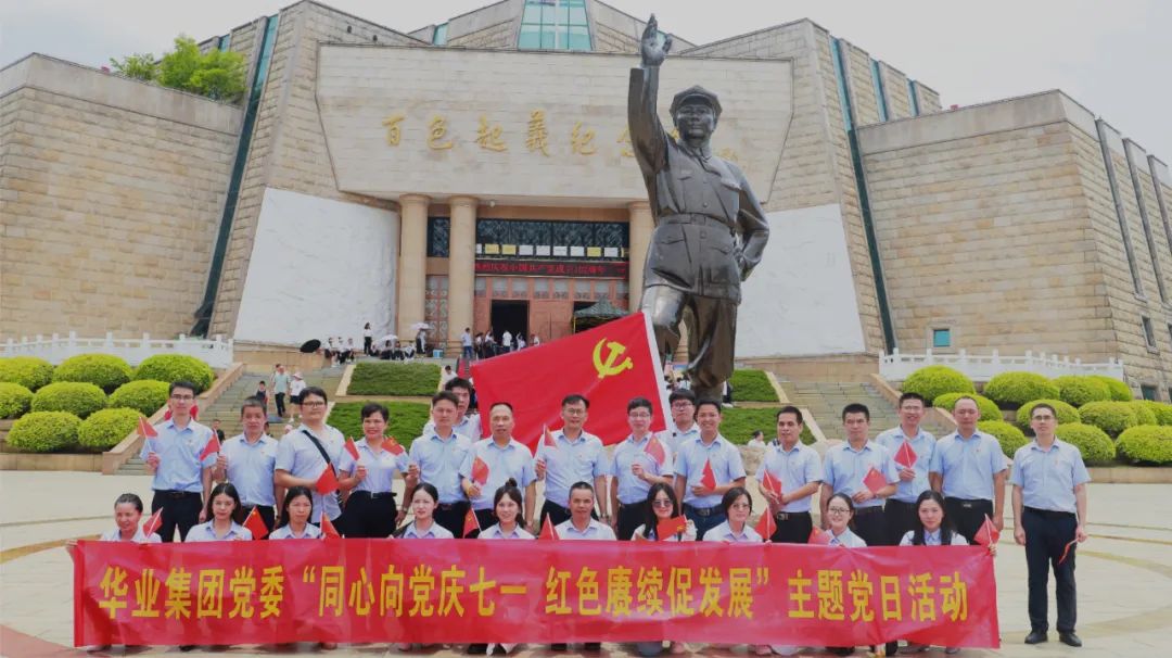 為熱烈慶祝中國共產(chǎn)黨成立102周年,7月1日,華業(yè)集團黨委于百色起義紀念園組織開展“同心向黨慶七一 紅色賡續(xù)促發(fā)展”主題黨日活動,旨在通過追尋紅色足跡,緬懷革命先烈,汲取奮進力量,始終聽黨話,感黨恩,跟黨走。集團總裁龍其偉,副總裁廖人興、龐樹玉(黨委書記),集團黨委、支部班子成員、部分黨員(入黨積極分子)代表共30人參加活動。
