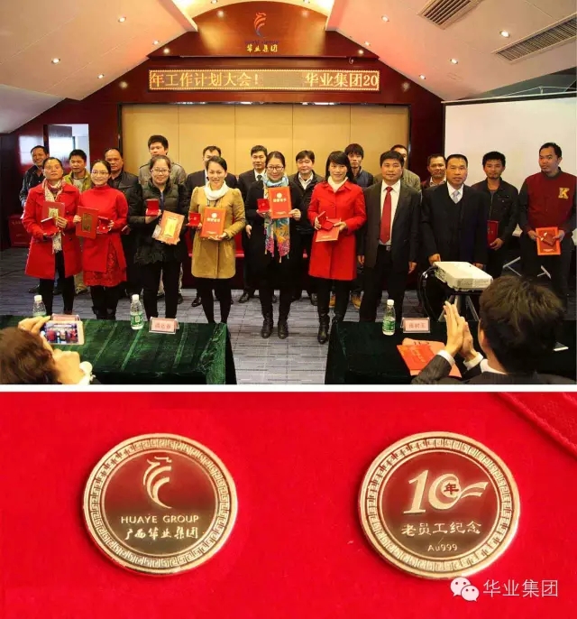 公司領(lǐng)導(dǎo)為十年員工頒發(fā)榮譽(yù)證書(shū)及紀(jì)念金幣